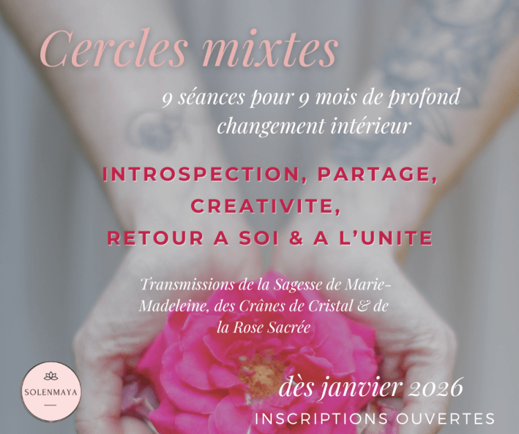 Les Cercles que je propose, guidés par la Médecine de la Rose Sacrée, de Marie-Madeleine et des Crânes de Cristal sont un appel au rassemblement, au partage et à l’ouverture.